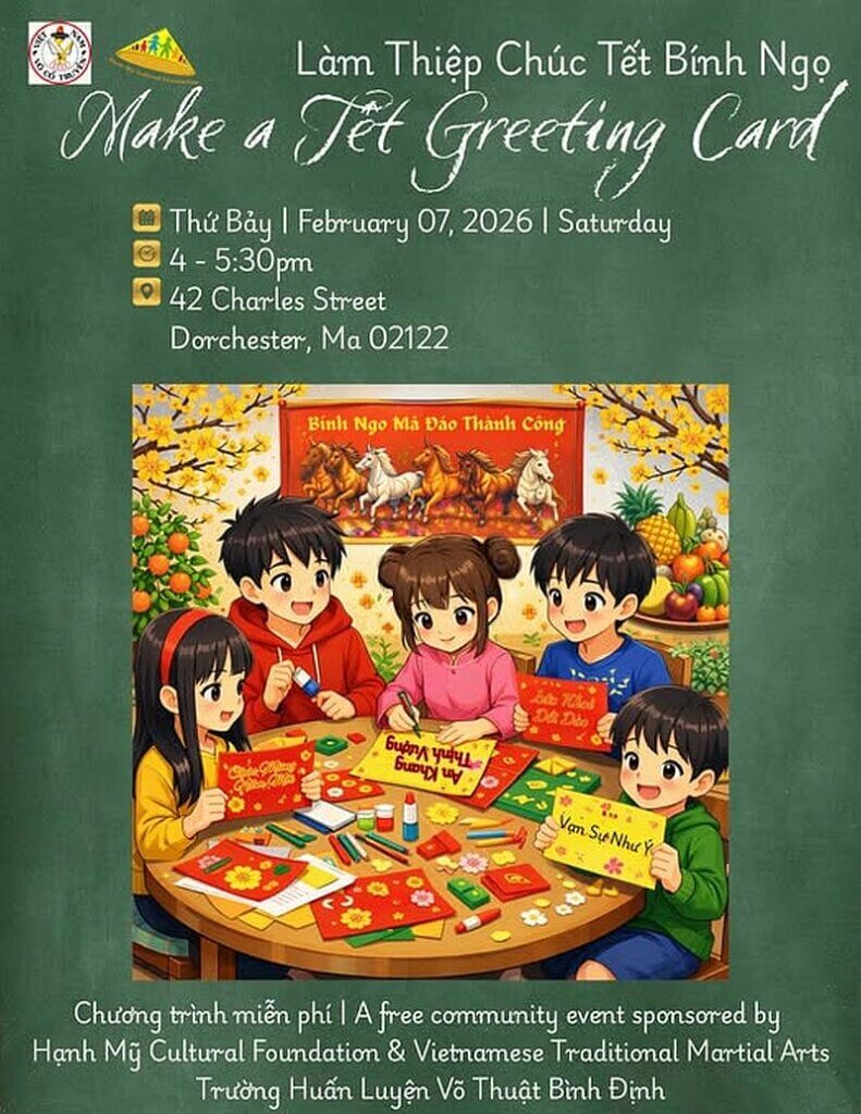 We hope you and your children will join us to make Tết greeting cards for our beloved elders in the community.