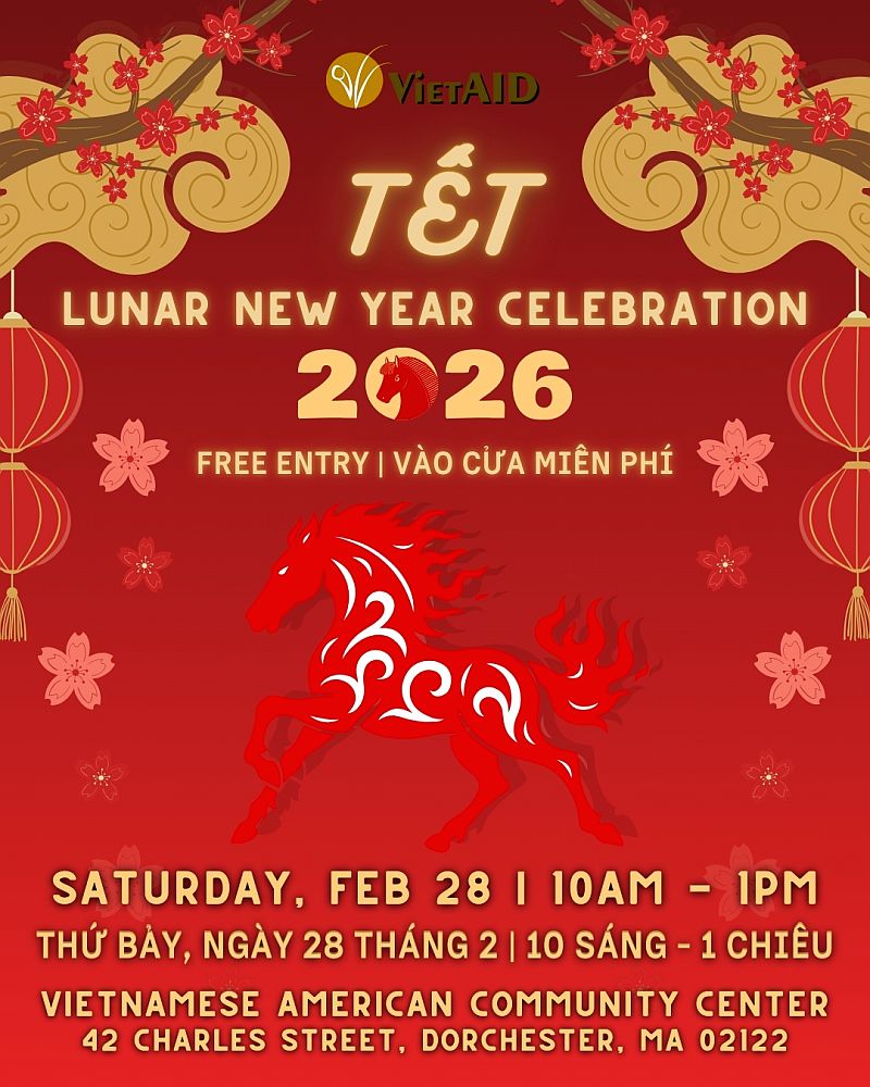 February 28, 2026: Lunar New Year Celebration at VACC Posted on February 2, 2026February 2, 2026 by NT Saturday, February 28, 2026 from 10AM – 1PM Vietnamese American Community Center 42 Charles Street, Dorchester, MA 02122 FREE Admission